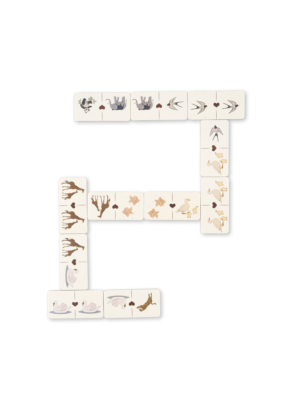 Classic animal dominoes game by Konges Sløjd. FSC™-certified materials. Includes 28 illustrated tiles. Suitable from age 3+. CE marked.