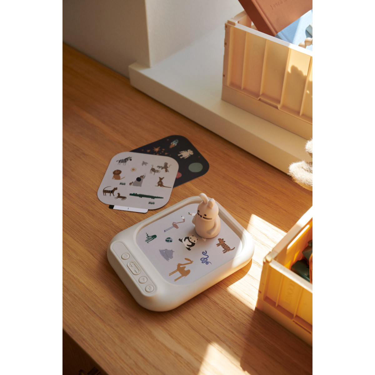 The Archie Activity Sound Board by Liewood is an interactive and educational toy designed to spark curiosity and encourage sensory exploration in children. With engaging sound effects, playful themed cards, and a cute rabbit figurine, this activity board invites kids to discover the sounds of different environments in a fun and intuitive way.