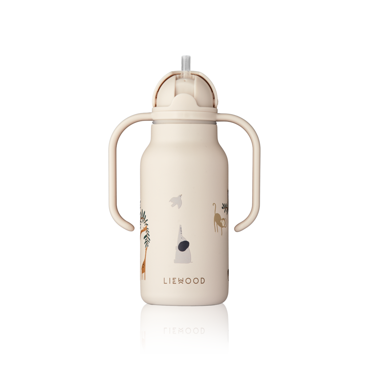 The Kimmie insulated baby water bottle by Liewood is a stylish and practical hydration solution for little ones on the go. Designed with dual handles for easy gripping, this premium 250 ml bottle is perfect for small hands learning to drink independently.