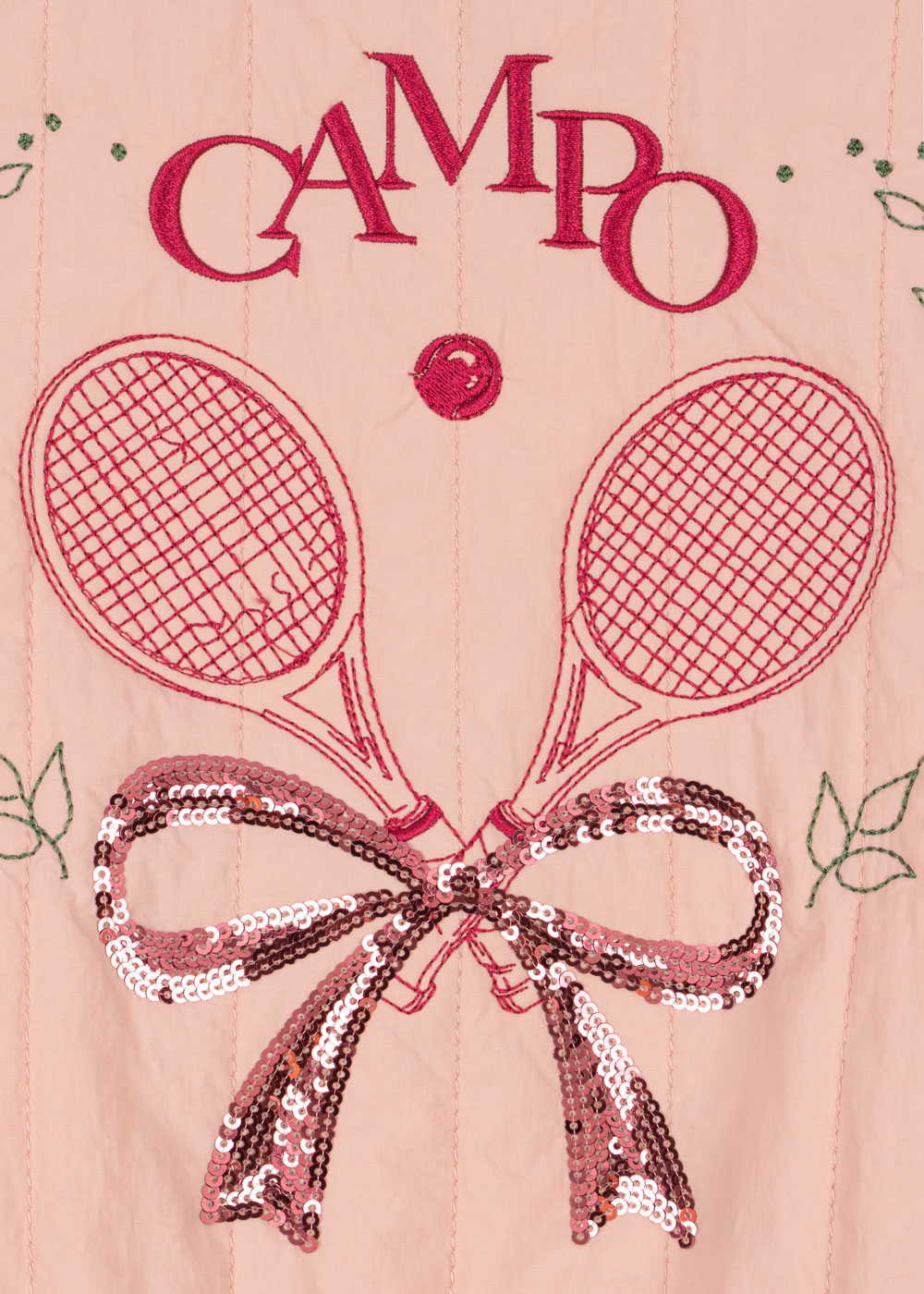 The Konges Sløjd Juno Sequin Bomber Jacket – Campo – Mellow Rose is a true classic and a forever favorite in the Konges Sløjd outerwear collection. Designed as a lightweight thermo jacket, it offers effective insulation with soft polyester padding while remaining breathable and comfortable for everyday wear.
