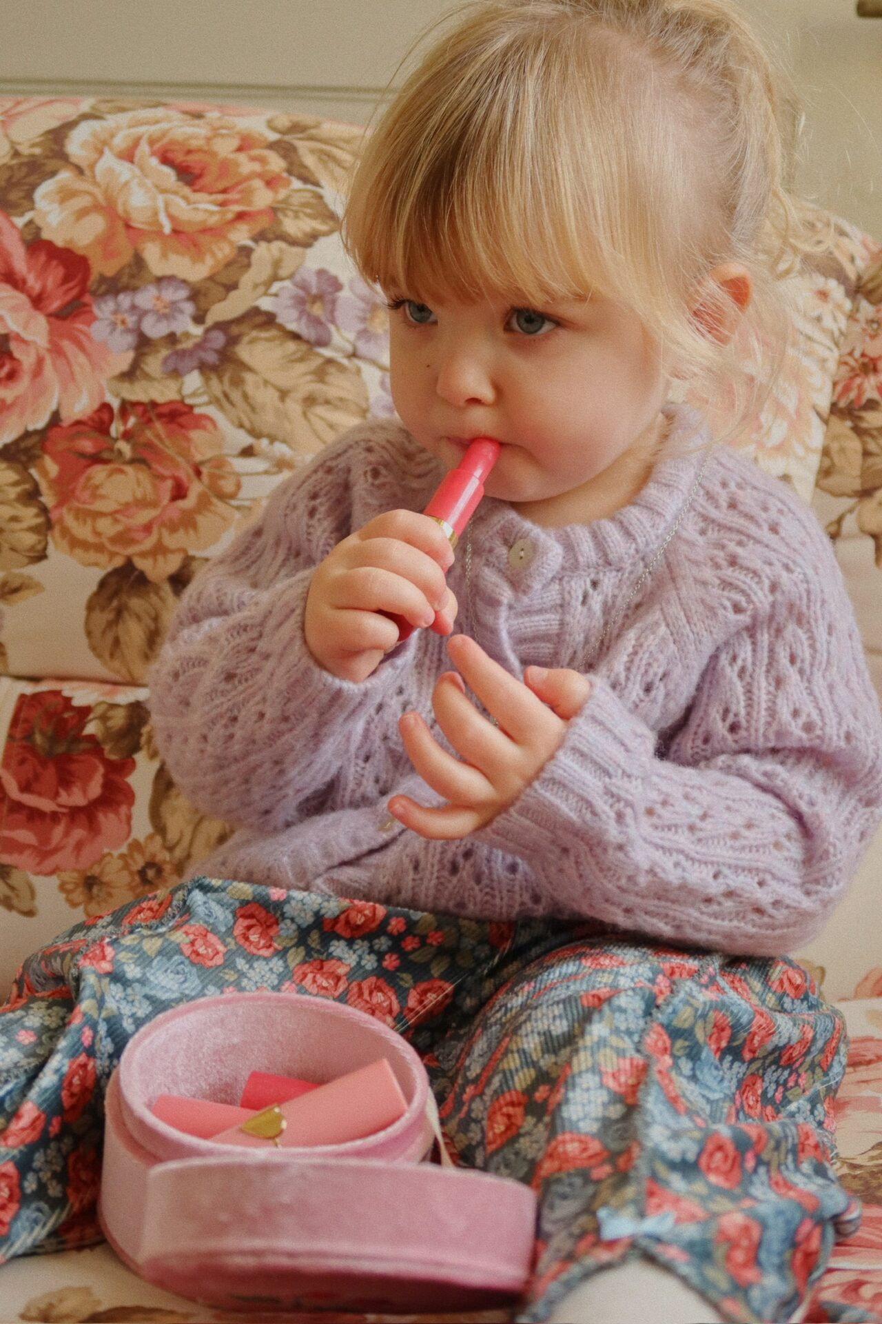 With its soft lavender hue and timeless silhouette, the Isa Cardigan is a versatile piece that pairs effortlessly with dresses, skirts, or casual looks — a lovely addition to any child’s wardrobe.