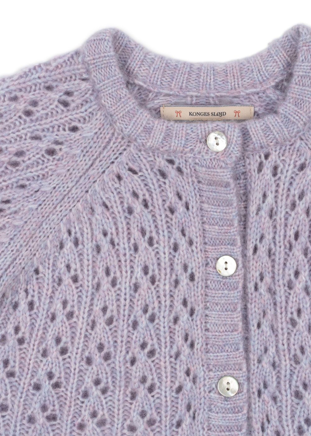 The Isa Cardigan in lavender mist by Konges Sløjd is a beautifully soft and fluffy knit, perfect for layering in cooler weather. Made from a warm and lightweight 50% wool / 50% nylon blend, it offers the ideal mix of breathability, softness, and durability.