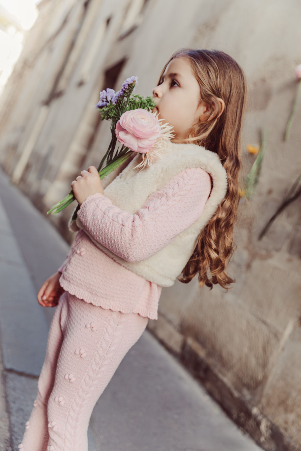 Leggings Molda Blush Louise Misha are splendid knitwear essentials for babies and young children, fusing comfort, charm, and refined detail. Handcrafted by the Parisian design team at Louise Misha, these leggings feature delicate cable-knit patterns along the sides that add graceful texture.