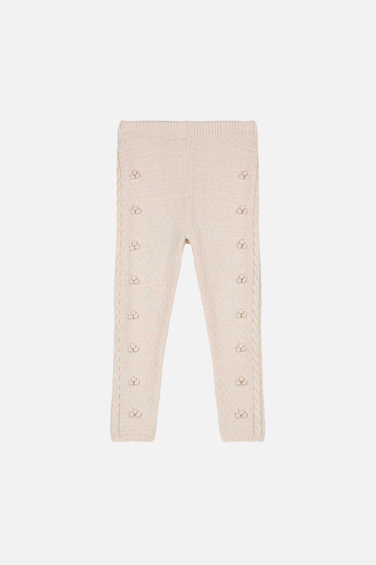 Leggings Molda Cream Louise Misha are a charming and stylish wardrobe staple for babies and young children. Designed in Paris by Louise Misha’s creative team, this delicate pair of leggings features elegant cable-knit patterns along the sides, accented by charming pom-poms that infuse a playful twinkle into the look.