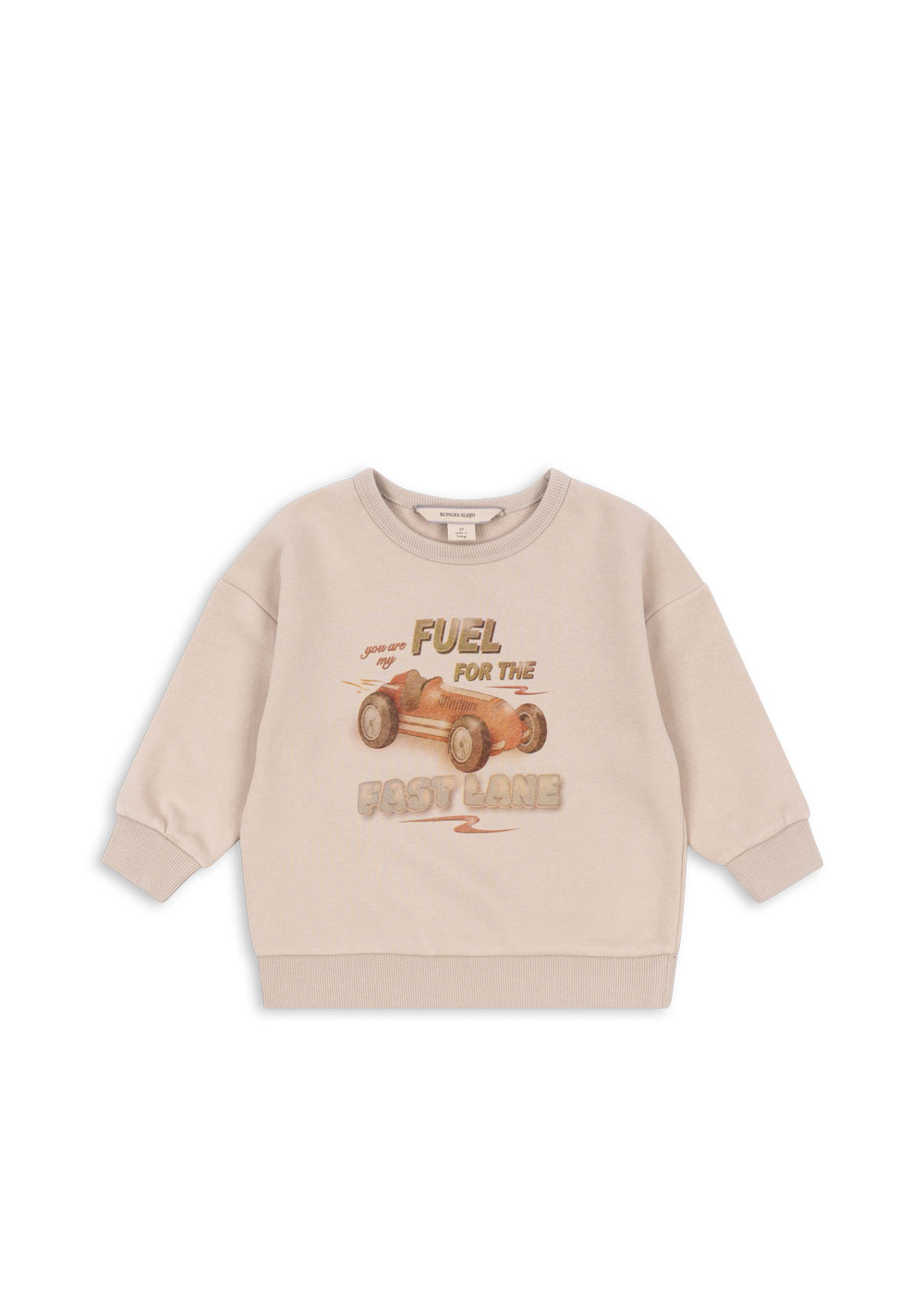 “You’re My Fuel for the Fast Lane” – perfect for little ones with energy to burn! The soft interior and ribbed details at the cuffs, neck, and hem make it a practical favorite for all-day wear.