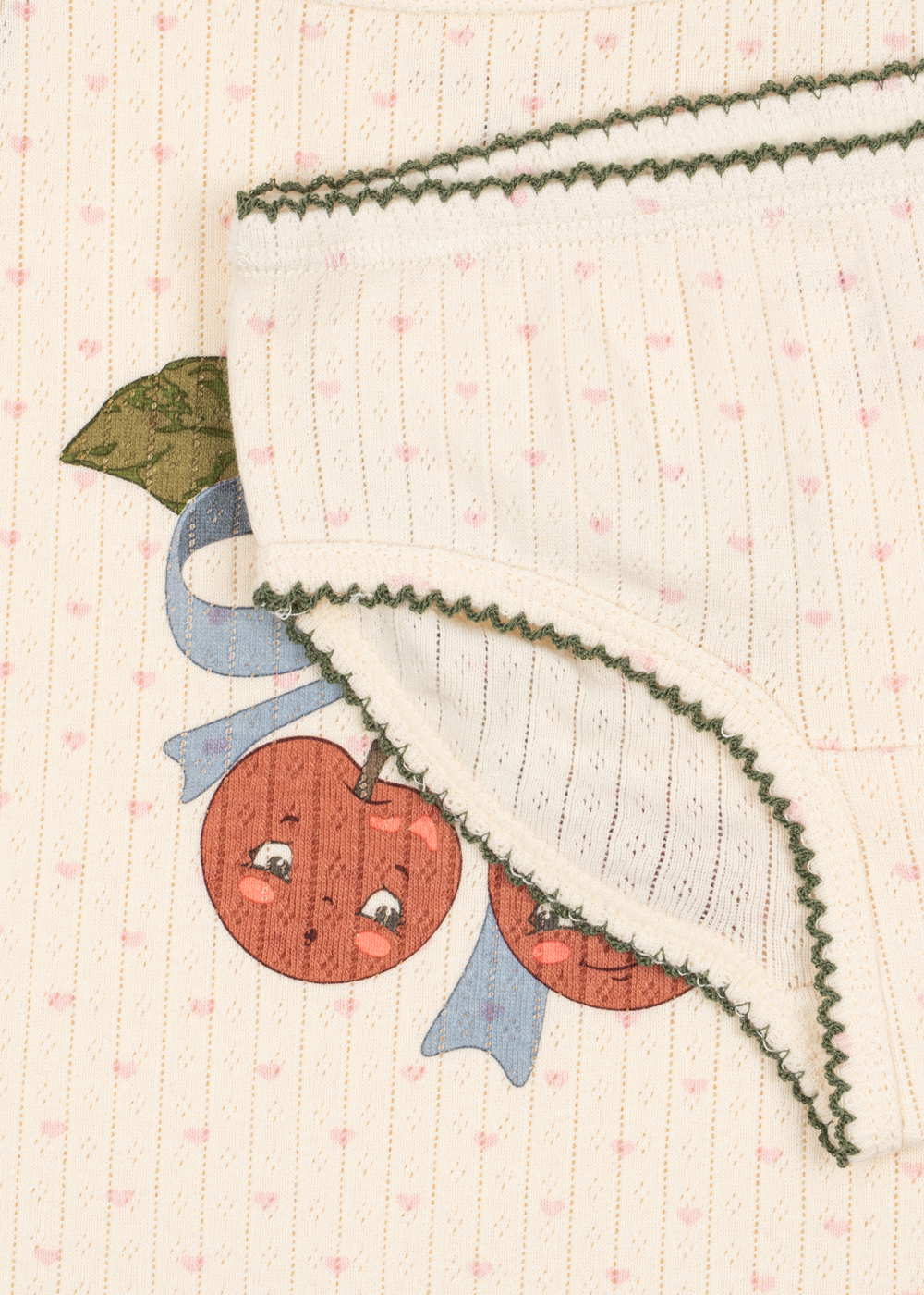The Minnie Pointelle Underwear Minnie Coeur by Konges Sløjd is a soft and comfortable two-piece underwear set designed for everyday wear. Made from 100% organic cotton, this set includes a delicate strap top and matching underpants, providing a breathable and gentle layer against the skin.