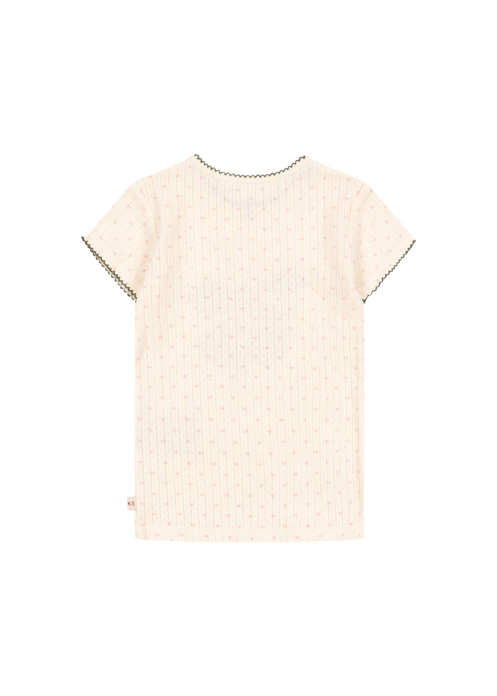 Another elegant detail is the decorative picot hemline, which adds a refined and playful finish to the design. This delicate edging enhances the soft aesthetic of the t-shirt while maintaining the minimal Scandinavian style that Konges Sløjd is known for.