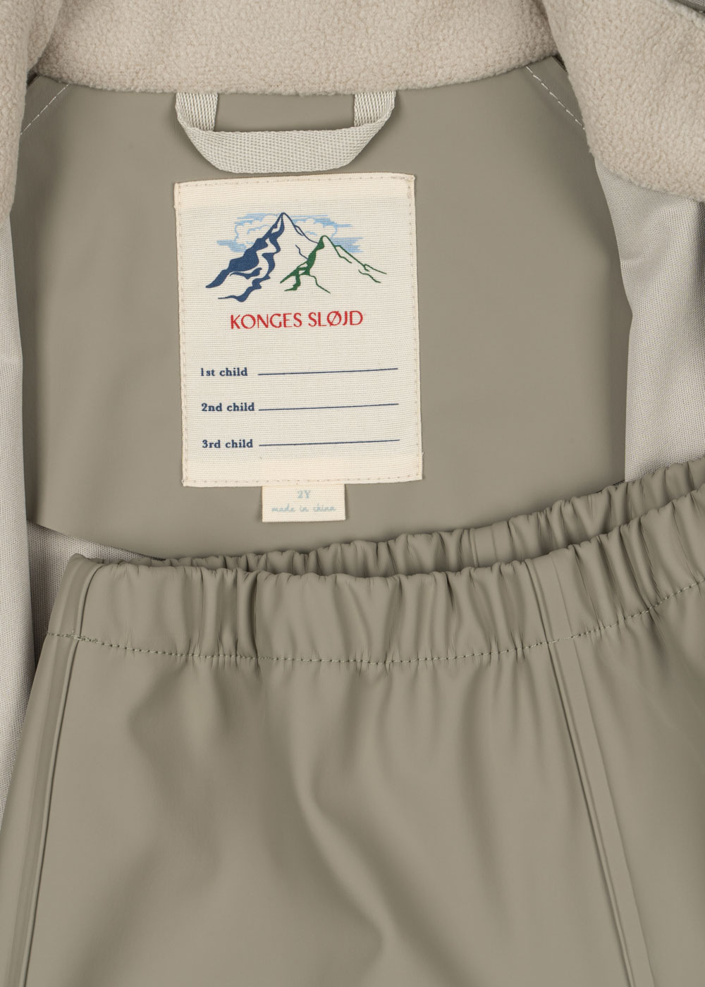 This rain set is breathable yet protective, making it suitable for year-round use layered over warm clothing. Thoughtfully designed by Konges Slojd, it supports free movement, independent dressing, and ultimate playtime functionality.