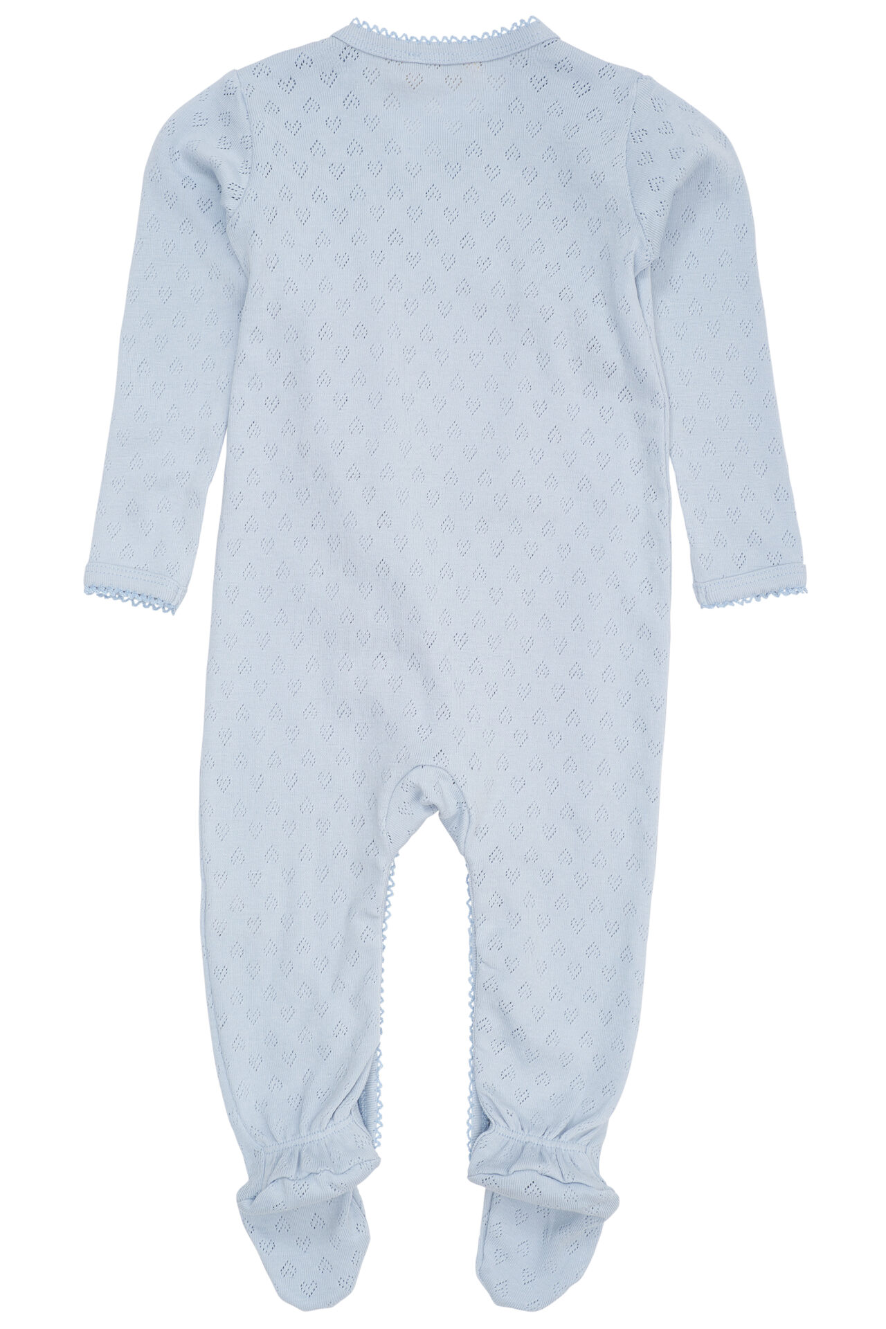 Long-sleeved body in ultra-soft organic pointelle jersey with tiny heart details. Features a cross-over front for easy changing. Holds its shape wash after wash.