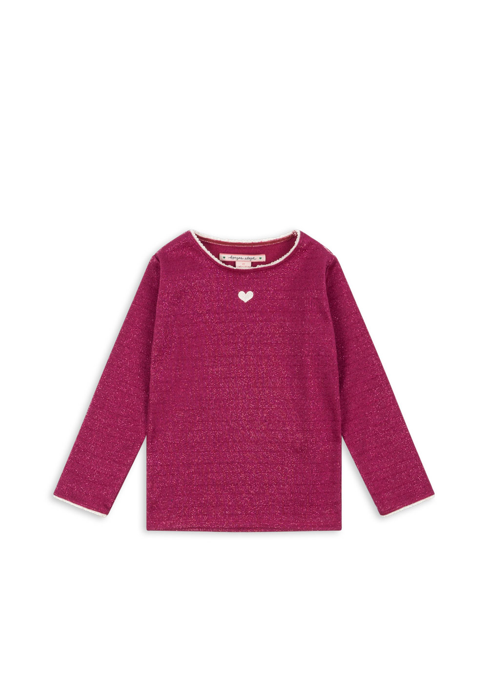 Woven with lurex thread, the roli blouse sangria heart Konges Slojd catches the light for a subtle, shiny finish that elevates its look without sacrificing comfort. It’s perfect for layering or wearing on its own, making it a versatile piece for any season.