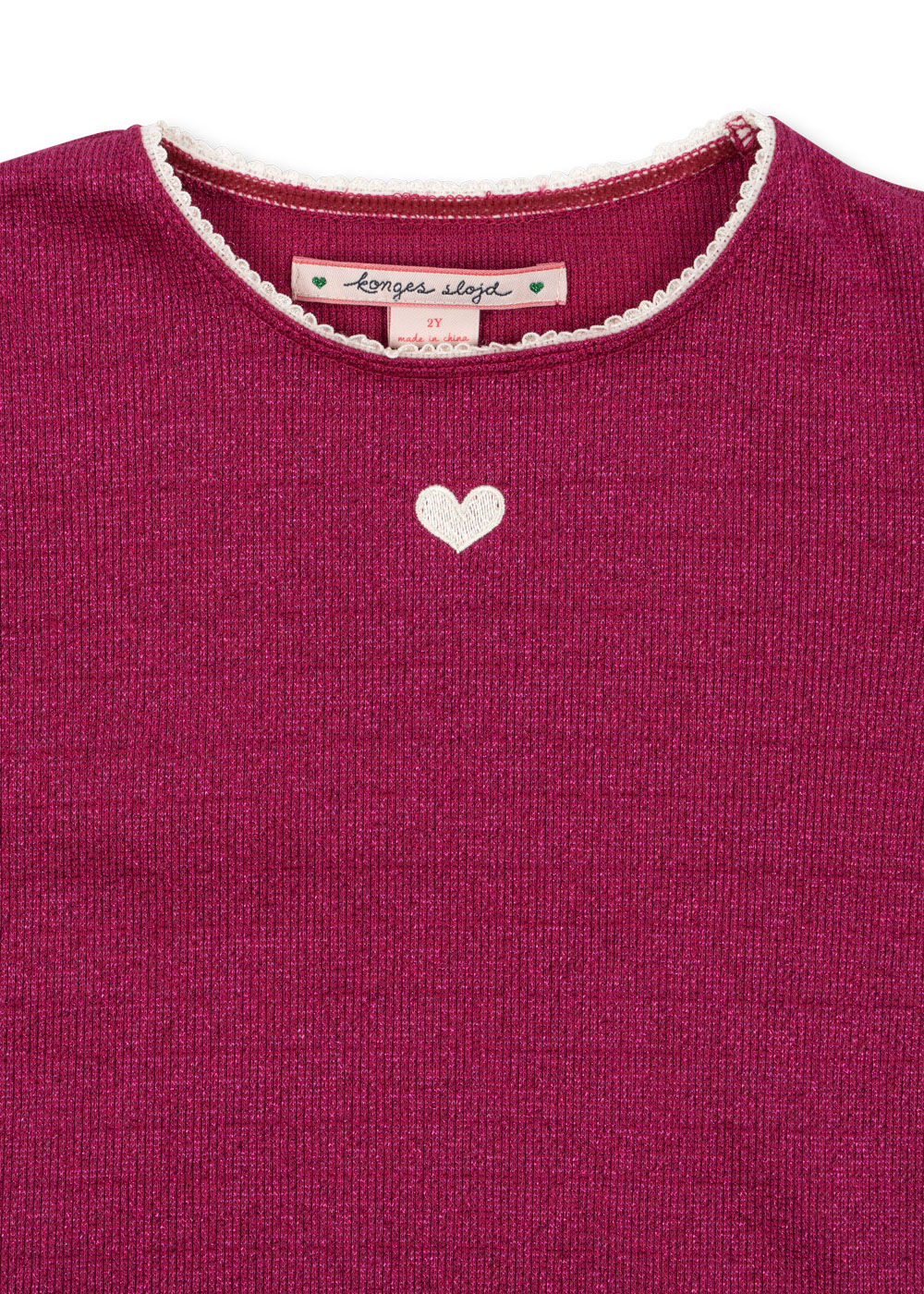 The roli blouse sangria heart Konges Slojd is a charming and comfortable everyday blouse, made from soft, stretchy rib fabric. Designed for playful days and cozy moments, this blouse features a beautiful sangria heart pattern that adds a sweet, whimsical touch to any outfit.