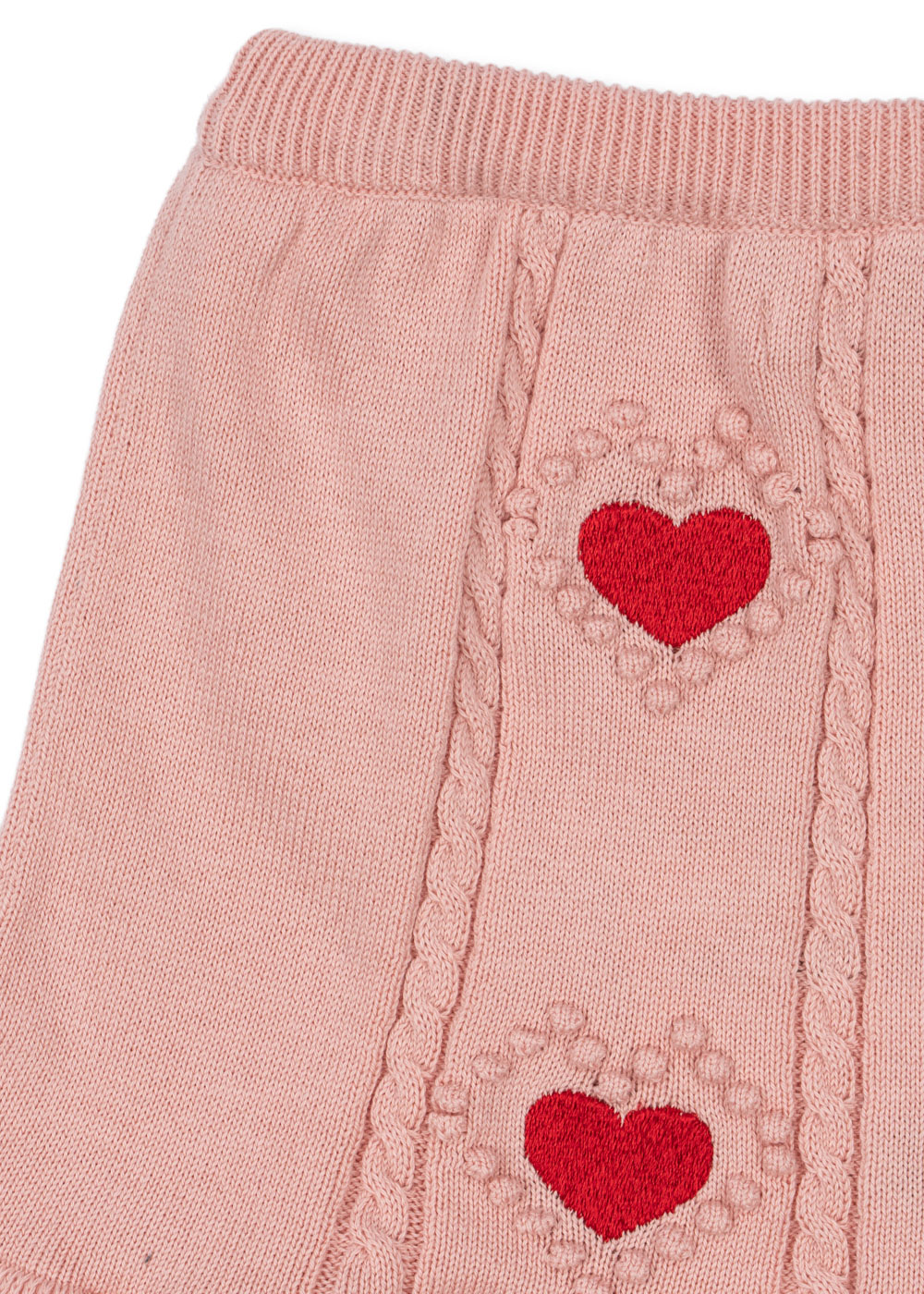 The silver pink color adds a soft and feminine touch, pairing effortlessly with the matching cardigan or any neutral top. Whether worn for everyday outings or special occasions, the soleil knit skirt GOTS silver pink Konges Slojd is a versatile wardrobe essential.